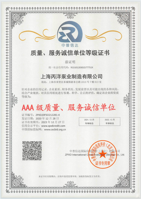 上海丙洋泵業(yè)集團(tuán)有限公司是專業(yè)從事水泵、生活消防自動給水設(shè)備及水泵智能控制的開發(fā)、生產(chǎn)、銷售為一體的生產(chǎn)型現(xiàn)代化民營企業(yè).主要產(chǎn)品擁有立式多級消防泵、立式單級管道消防泵、消火栓噴淋泵、浙江排污泵、成套供水設(shè)備、上海消防泵、管道離心泵、消防泵、恒壓消防泵,化工泵,離心泵、管道泵、多級泵、XBD消防泵、排污泵、自吸泵等系列產(chǎn)品.丙洋泵業(yè)在以質(zhì)量求生存,科技創(chuàng)興;走向未來的方針,不斷開拓進(jìn)取、創(chuàng)新發(fā)展,在長期的實(shí)踐中形成了一套完整的質(zhì)量管理體系,并配備了一支安裝調(diào)試、維護(hù)的售后服務(wù)隊(duì)伍.本公司以優(yōu)質(zhì)的管理、優(yōu)質(zhì)的產(chǎn)品、優(yōu)質(zhì)的服務(wù)贏得了國內(nèi)廣大用戶的信賴和好評.